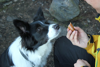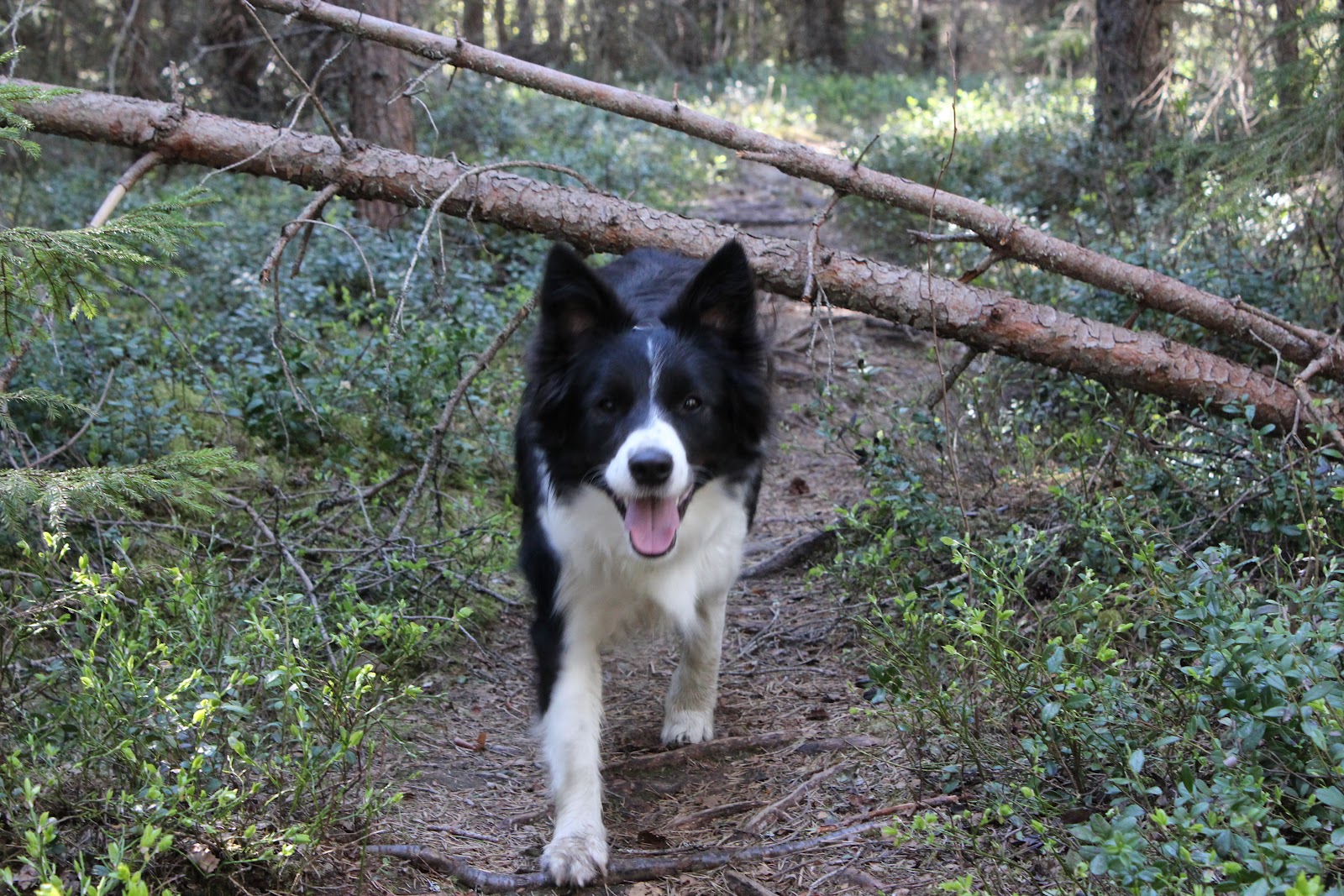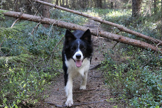Ollaan päästy juoksemaan hieman pitempääkin lenkkiä nyt, ja kokeileen edessä viilettävän rullaluistelija-Juhan avulla miltä se canicross maistuu. Multa meinaa lähteä jalat alta kun Chimppa vetää pää viidentenä jalkana sellasia spurtteja että! Taas tuli todettua, että oma kunto kaipaa kohennusta,jos omaan bortsuunsa vertaa... tai ehkäpä ei kannata verrata. :)