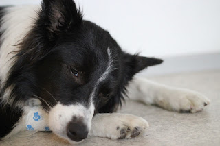 No, eräällä heitollahan Chandler oli keppiä nopeampi, ja saavutti sen ennen kuin keppi oli kunnolla maahan laskeutunutkaan. Pieni viattomalta kuulostava uikahdus kuului, kun koira sai kepin suuhunsa, mutta endorfiinin virratessa suonissa olisi vielä jatkanut touhua. Minä kuitenkin katsoin paremmaksi lopettaa ja mennä sisälle. Matkalla Chandler alkoi kakoa ja yski/oksensi pari kertaa pienen määrän vaahtomaista sitkeää limaa, jossa oli hiukan verta joukossa. Neiti kuitenkin käveli innokkaasti ja näytti muuten ihan normaalilta, joten ajattelin, että tuskin siellä kovin suurta vauriota on...