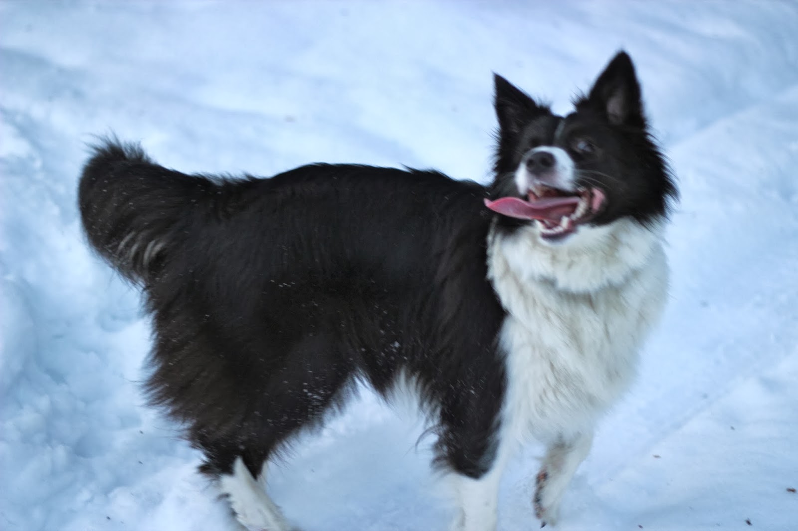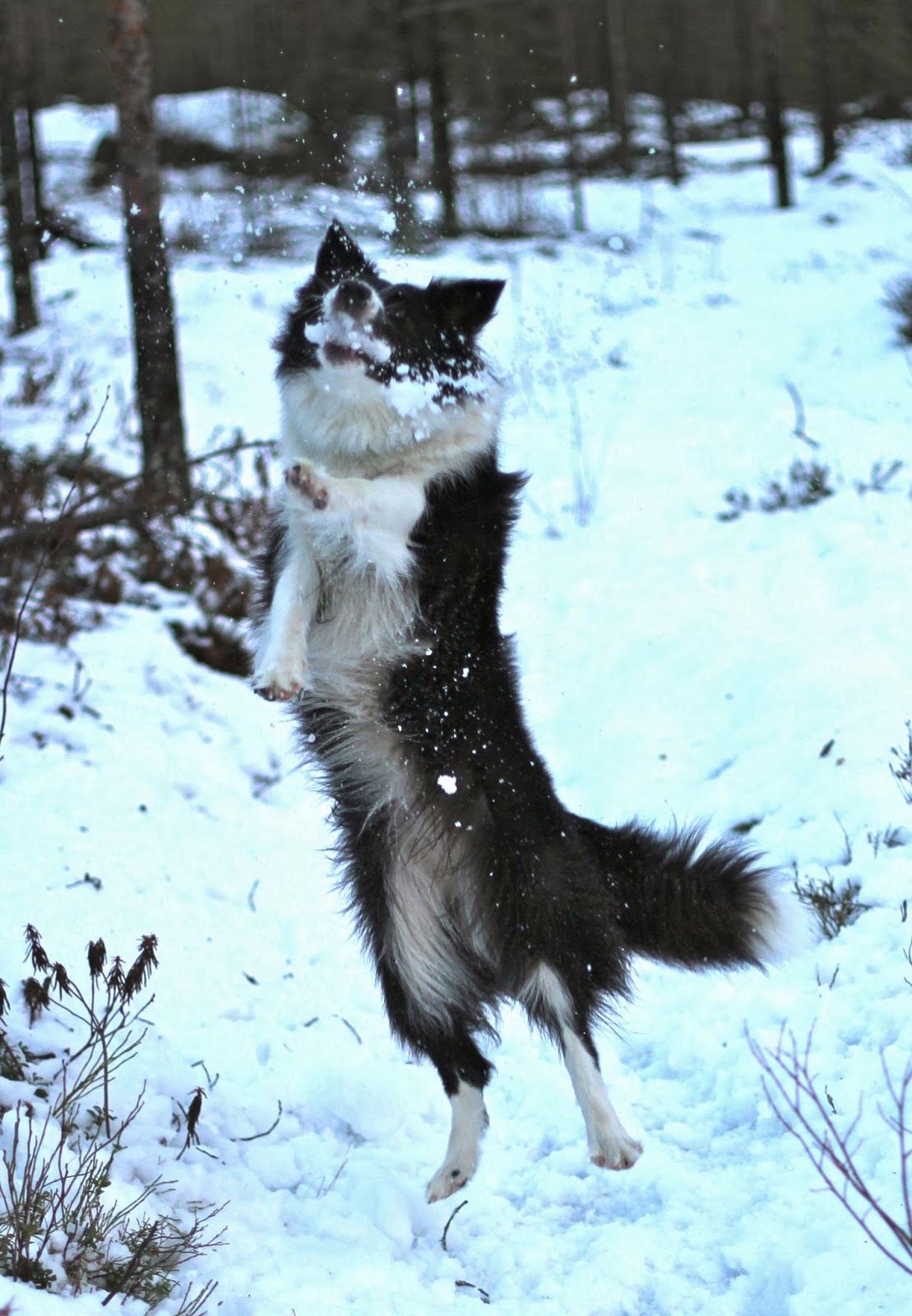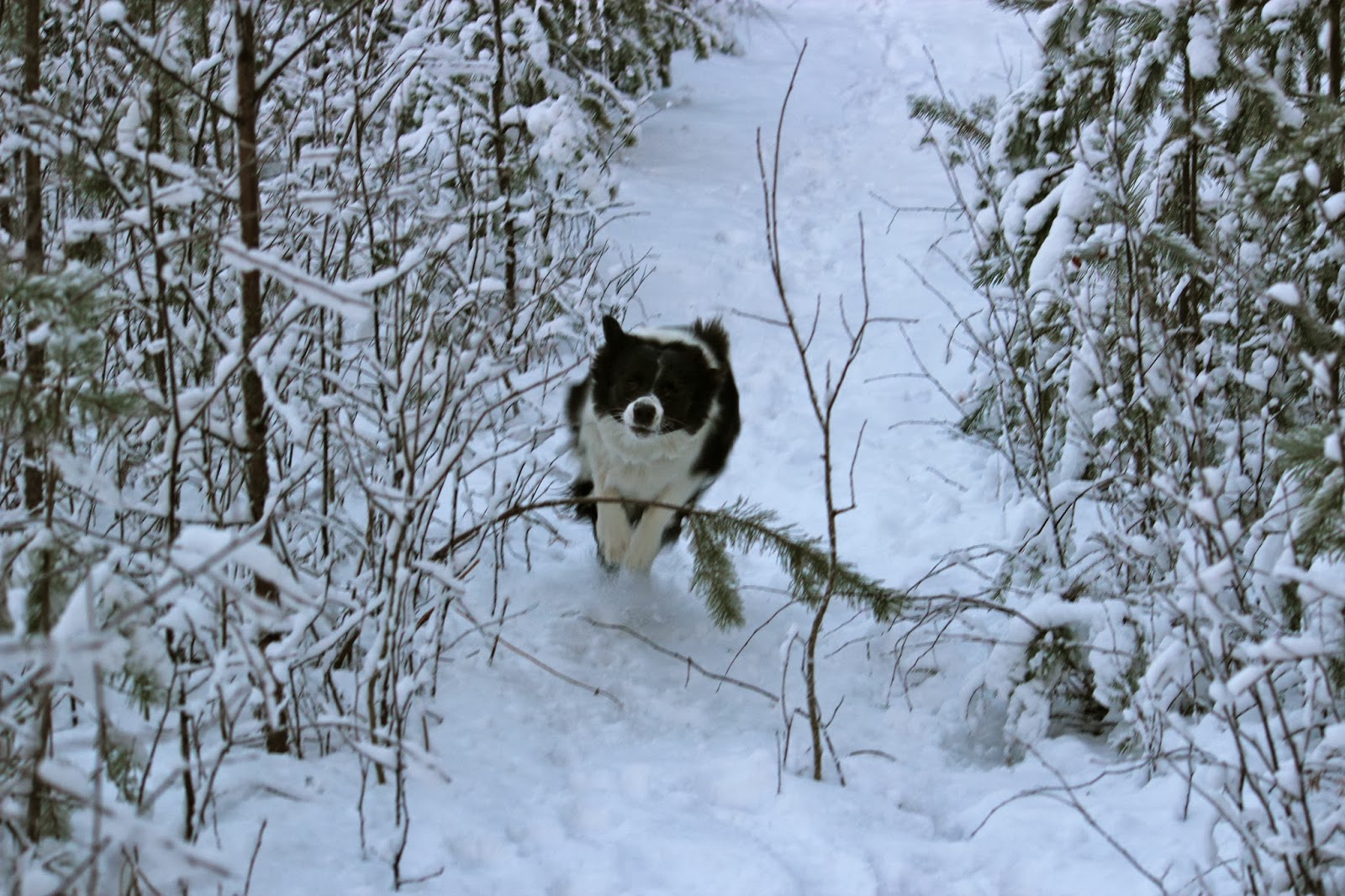 Ongelmat alkoivat siinä vaiheessa, kun me tytöt saunavuorollamme kävimme takapihan hangessa vilvoittelemassa ja kyllähän siitä kiljuntaa pääsi jokaisella. Ovi oli raollaan. Juha sanoi, että tilanne oli ollut tämä: ilotulituspamahdus + tyttöjen kiljuminen heti perään = koira säikähtää. En siis usko, että ressiä olisi tullut ilman meidän kiljumistamme, ei ainakaan aiemmin illalla tullut. No, Chandler hakeutui läähättämään makuuhuoneeseemme. Annoimme oven olla auki ja käyttäydyimme mahdollisimman normaalisti. Saunasta tultuamme puheen sorina jatkui normaaliin tapaan ja kyllä se neitikin siitä pian sitten palautui normaaliksi. Mutta ikävä oli tapahtuma, etenkin kun se oli ajattelemattomuudella itse aiheutettu. En usko, että tulevina vuosina tulee silti olemaan ongelmaa, kunhan teemme lenkit ennen paukkeita ja pidämme vain huolen, ettei vastaavaa tapahdu.