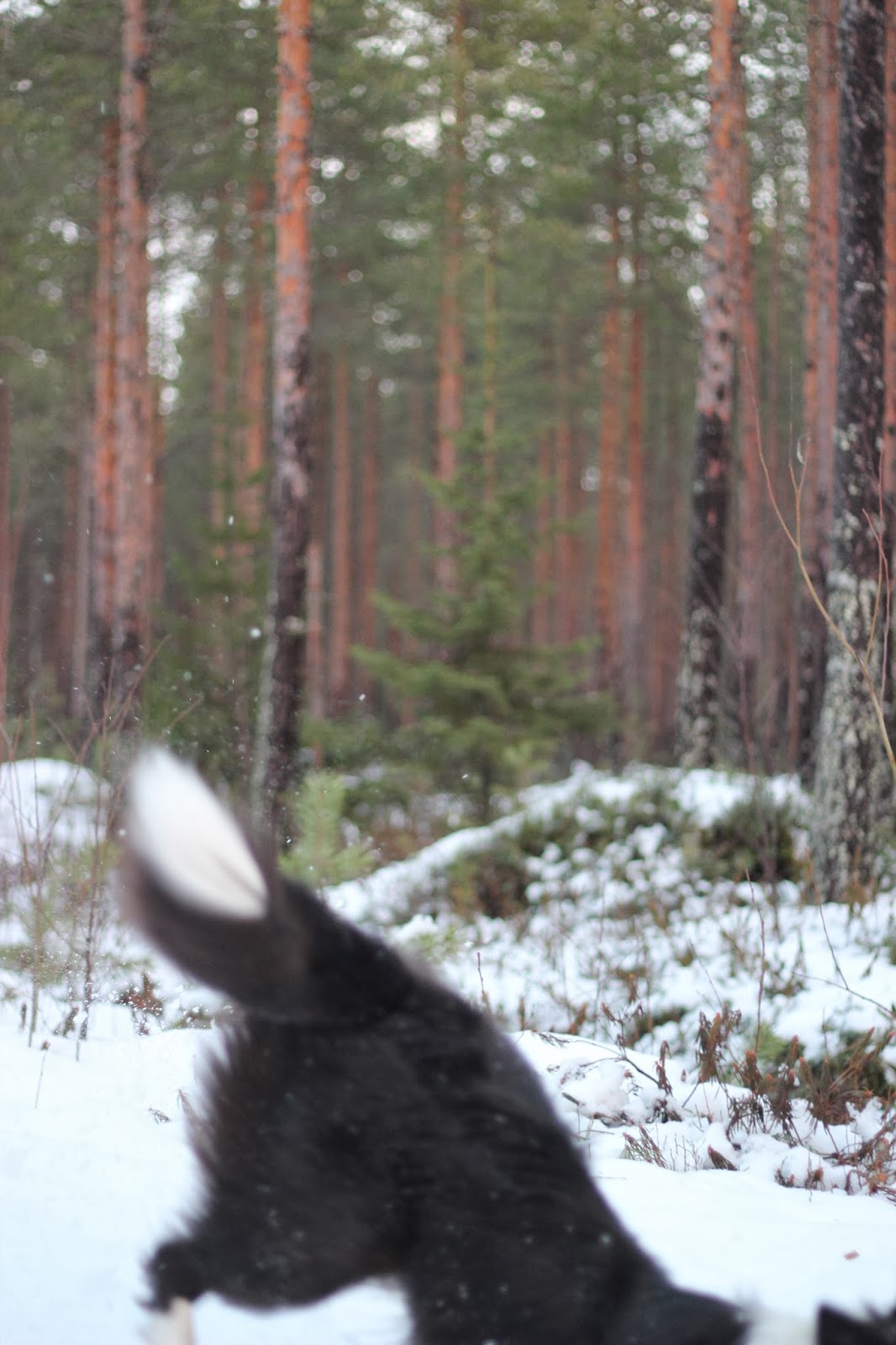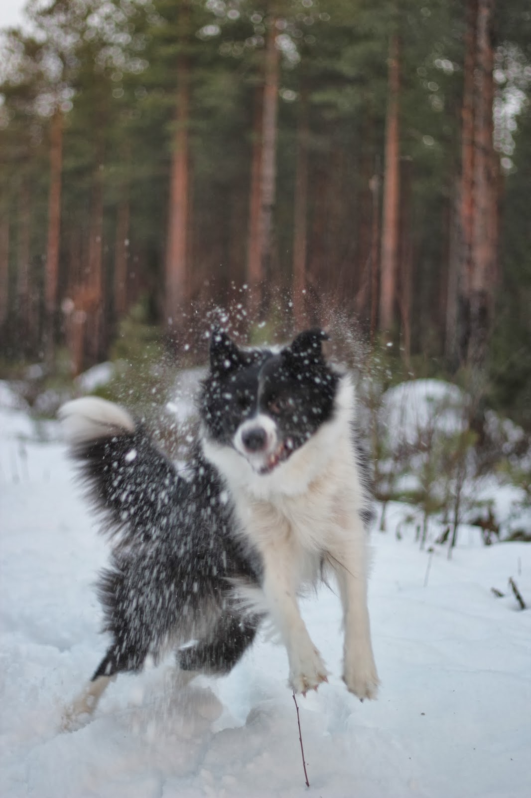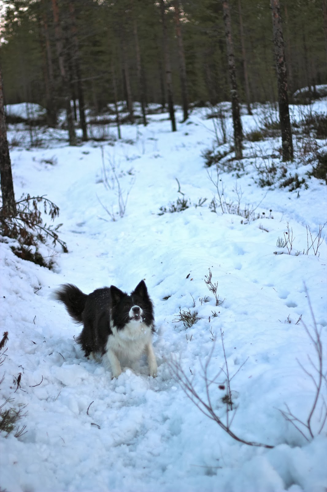 Ongelmat alkoivat siinä vaiheessa, kun me tytöt saunavuorollamme kävimme takapihan hangessa vilvoittelemassa ja kyllähän siitä kiljuntaa pääsi jokaisella. Ovi oli raollaan. Juha sanoi, että tilanne oli ollut tämä: ilotulituspamahdus + tyttöjen kiljuminen heti perään = koira säikähtää. En siis usko, että ressiä olisi tullut ilman meidän kiljumistamme, ei ainakaan aiemmin illalla tullut. No, Chandler hakeutui läähättämään makuuhuoneeseemme. Annoimme oven olla auki ja käyttäydyimme mahdollisimman normaalisti. Saunasta tultuamme puheen sorina jatkui normaaliin tapaan ja kyllä se neitikin siitä pian sitten palautui normaaliksi. Mutta ikävä oli tapahtuma, etenkin kun se oli ajattelemattomuudella itse aiheutettu. En usko, että tulevina vuosina tulee silti olemaan ongelmaa, kunhan teemme lenkit ennen paukkeita ja pidämme vain huolen, ettei vastaavaa tapahdu.